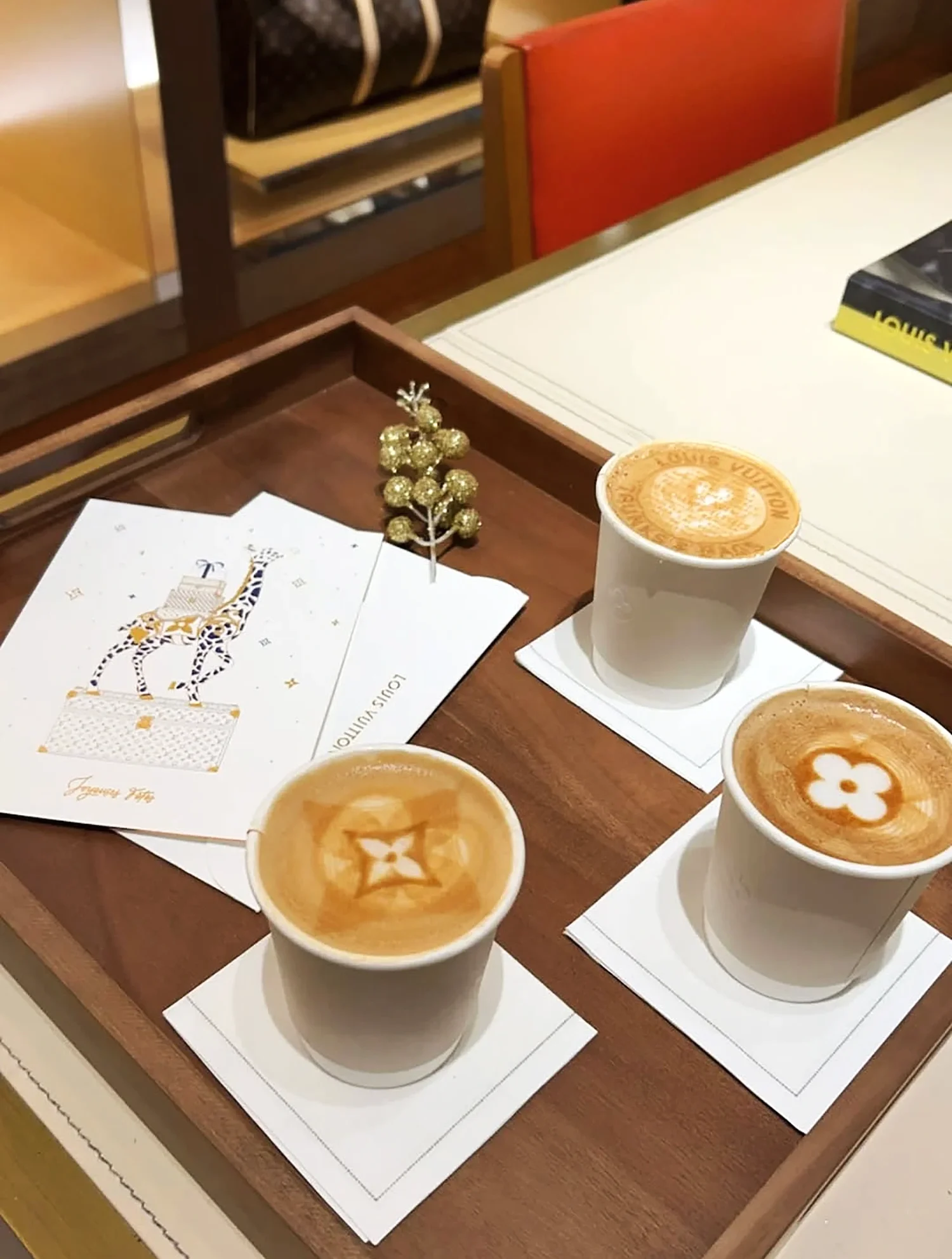 Custom drinks named after team leads, latte art