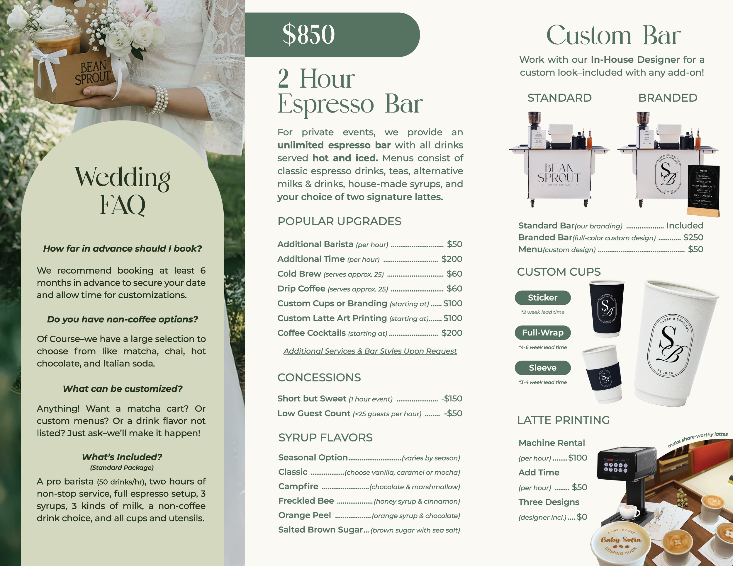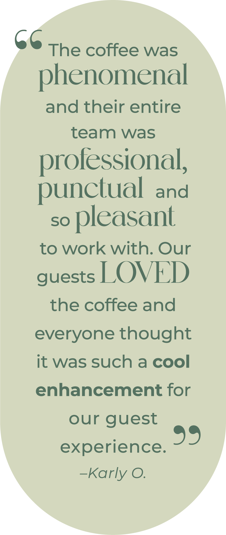 Pro Baristas: Our baristas deliver high-speed, high-quality service that matches your weddings energy.